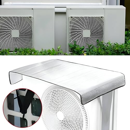 - This reflective protective cover for outdoor units is expertly crafted from high-quality aluminum foil and bubble insulation. It efficiently shields your air conditioning unit from sunlight, rain, and dust, significantly reducing energy bills. Enjoy energy savings while ensuring environmental responsibility with this essential product designed for most standard air conditioning units.