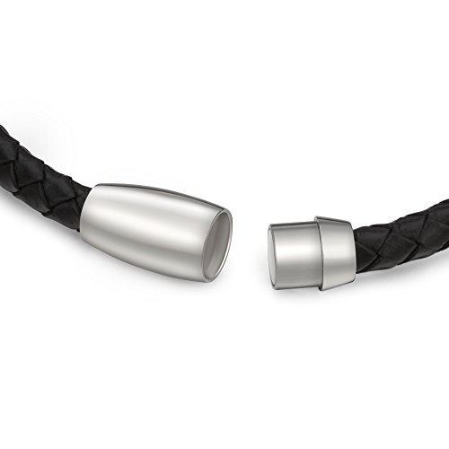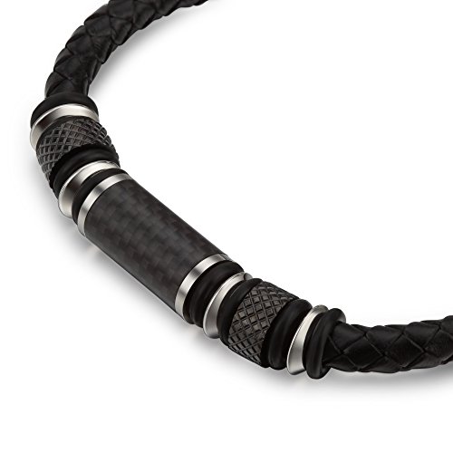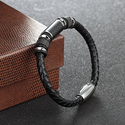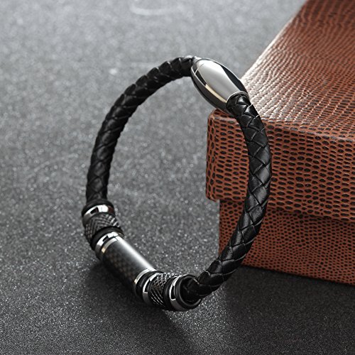 COOLMAN - سوار كول مان من الجلد للرجال مع خرز من الستانلس ستيل والياف الكربون ومشبك مغناطيسي 8.5 بوصة, 8.5 inch, ستانلس ستيل جلد