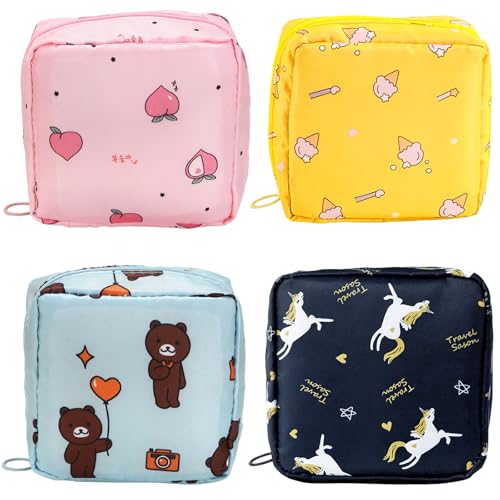 CoolShef - 4Pcs Sanitary Pad Pouch for Travel, Waterproof Small Napkin Pouches for Women and Girls, Multi-Functional Storage for Sanitary Pads, Earphones, and Jewelry