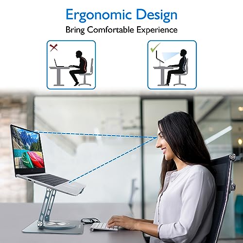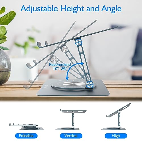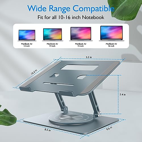 Coolwill - حامل لاب توب دوار 360 درجة من كولويل لابتوب الومنيوم قابل للطي بارتفاع للتعديل كمبيوتر مريح متوافق مع ماك بوك اير-جميع اجهزة اللابتوب مقاس 10-16 انش رمادي