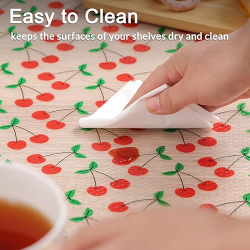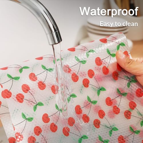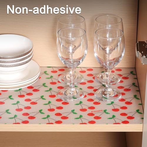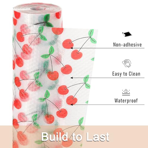 Cooyes - Cooyes Shelf Liner, Non-Adhesive Waterproof Shelf Paper with Fruit Pattern, Easy to Cut and Durable EVA Cabinet & Drawer Mat for Kitchen (23.6 Inch W x 118 Inch L, Red Cherry)