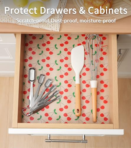 - WIDE RANGE OF USE: The drawer liner can be used in multiple areas of the home, providing surface protection in your home organization, cupboard, refrigerator, and bathroom. They can be used as kitchen liners to ensure cleanliness or as refrigerator mats to keep food and fruits fresh. They are also suitable as cabinet mats, drawer liners, cupboard pads, desk liners, and table pads.