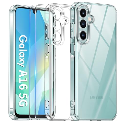 COPIKE - COPIKE Shockproof Cover for Samsung Galaxy A16 4G / 5G and 2 Tempered Glass Films, Camera Protection Case [Anti-Yellowing] Slim Hard PC, Transparent