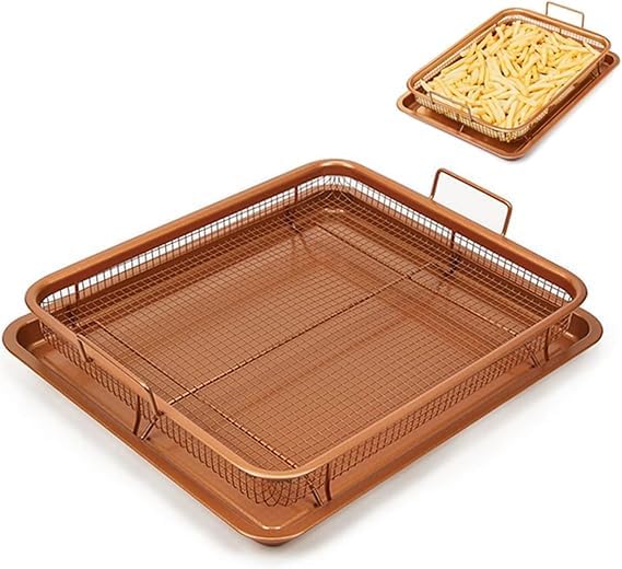 Generic - Copper Roasting Tray Durable Portable Oil Filter Mesh Oven Air Fryer Frying Pan for Frying Potatoes Chicken