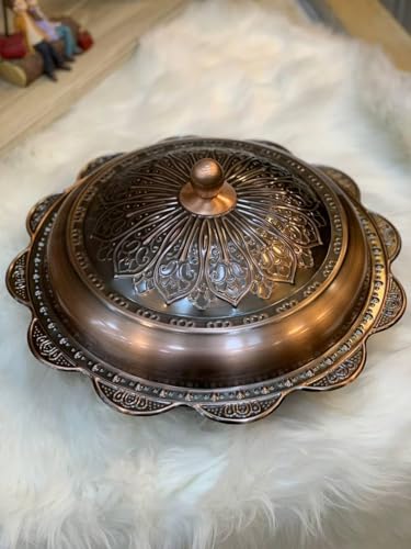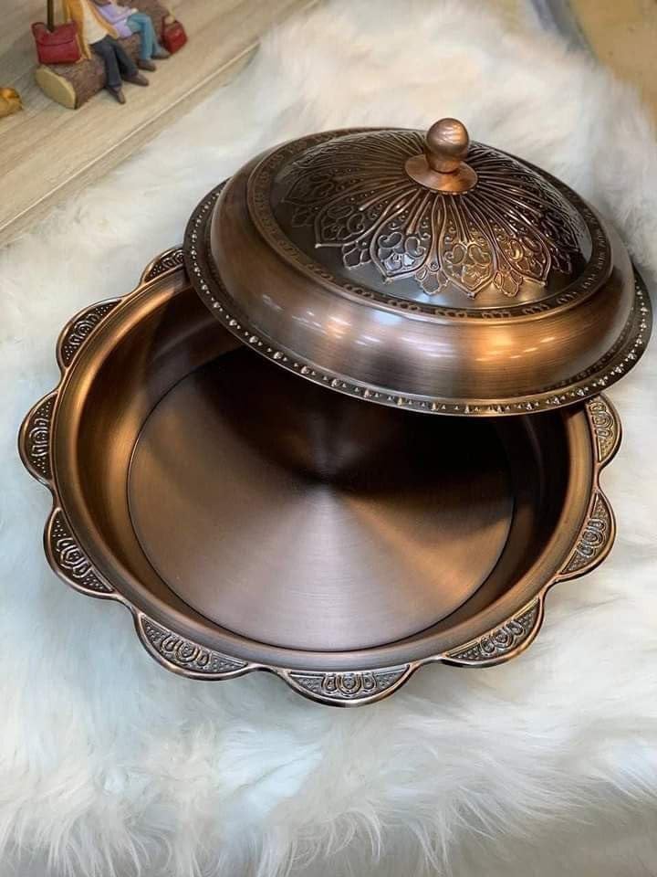 Generic - صينية تقديم من النحاس مع غطاء بتصميم عربي لتقديم الكبسة والمندي والمشويات