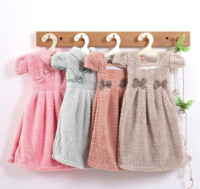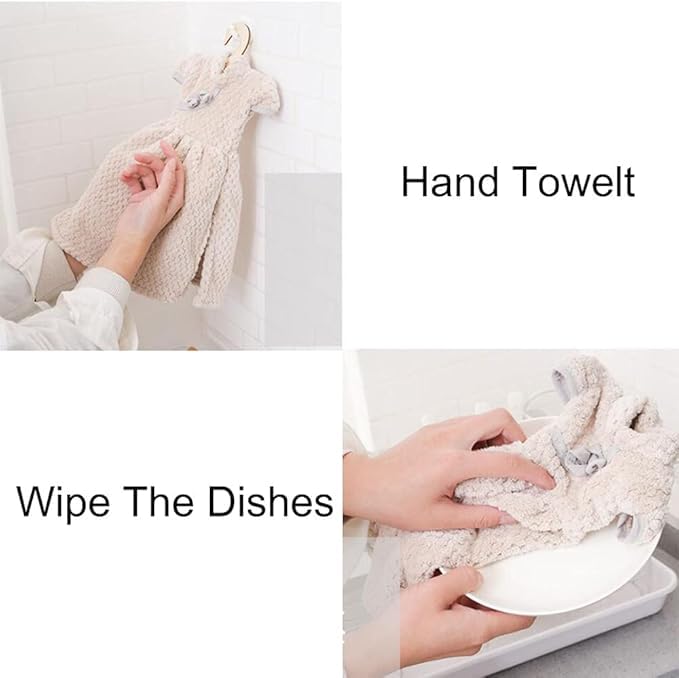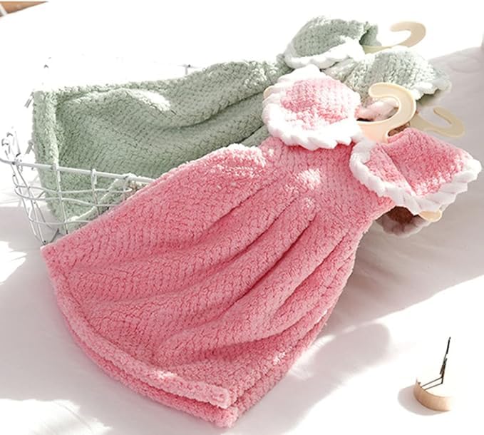 Generic - Coral Fleece Kitchen Towels Set with Hanging Loop, Quick Dry, High Absorption, Mini Skirt Design (2)