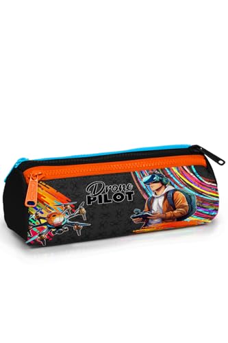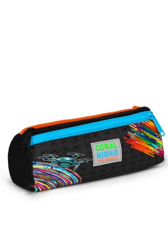 Coral High - Coral High Kids Black Drone Pilot Patterned Three-Compartment Pencil Bag