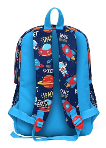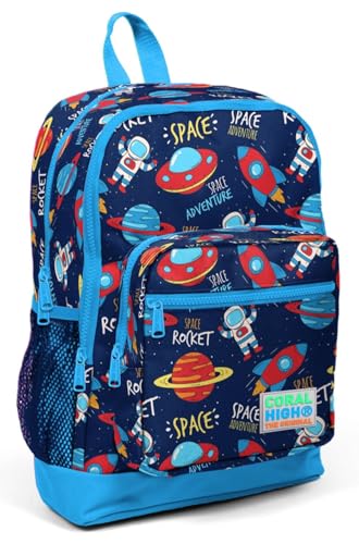 Coral High - Coral High Kids Four Compartment School Backpack - Navy Blue Space Pattern