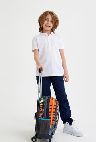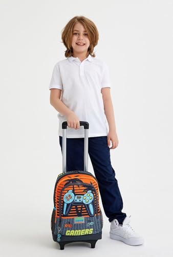 Coral High - Coral High Kids Gray Orange Gamer Patterned Three Compartment Trolley School Backpack