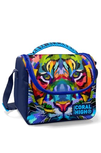 Coral High - Coral High Kids Navy Blue Tiger Patterned Thermo Lunch Bag