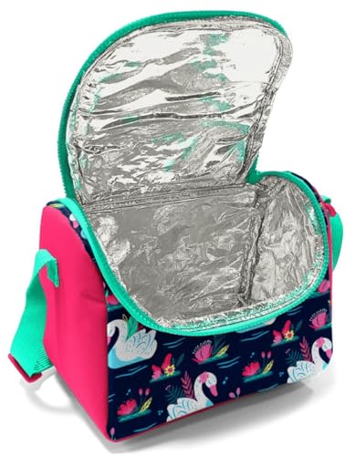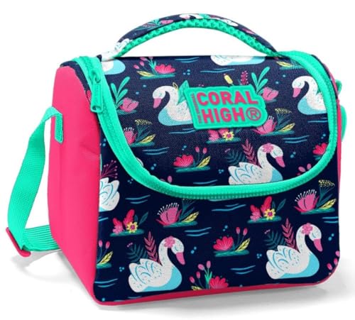 Coral High - لانش باج حراري للأطفال بنمط بجعة من كورال هاي، أزرق كحلي ومرجاني نيون، البوليستر