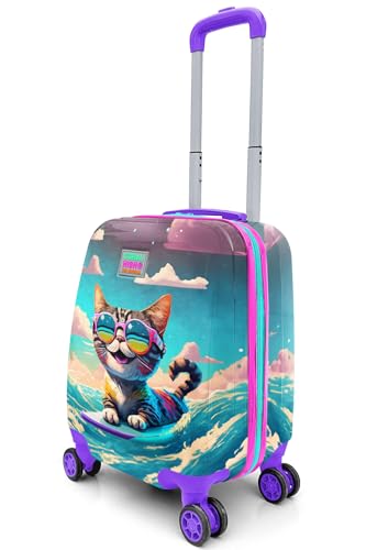 Coral High - Coral High Kids Surfer Cat Patterned Children's Suitcase