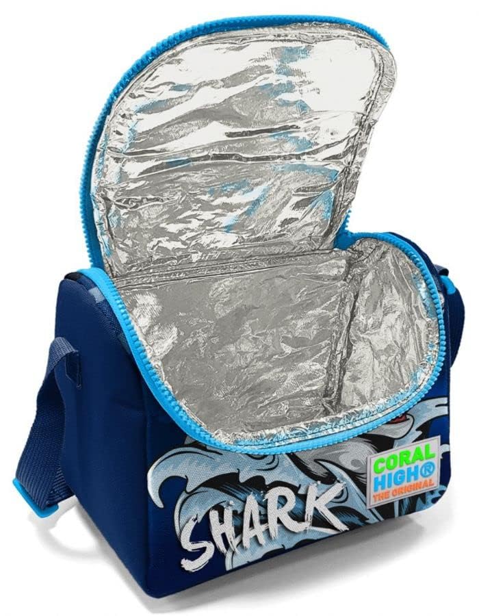Coral High - Coral High Kids Thermal Lunch Bag - Navy Blue Blue Shark Pattern