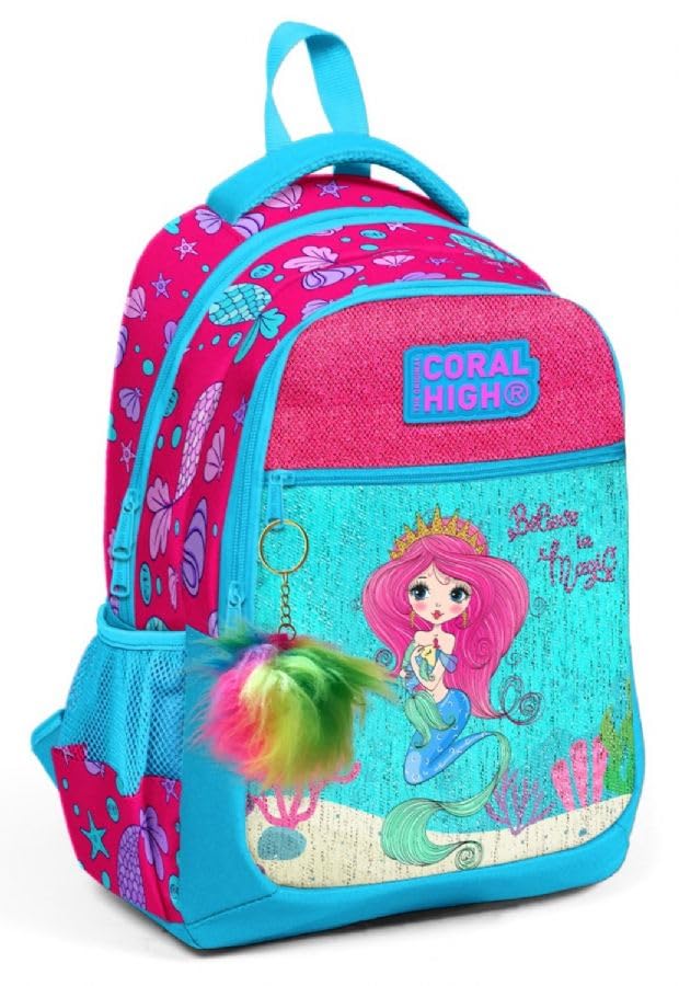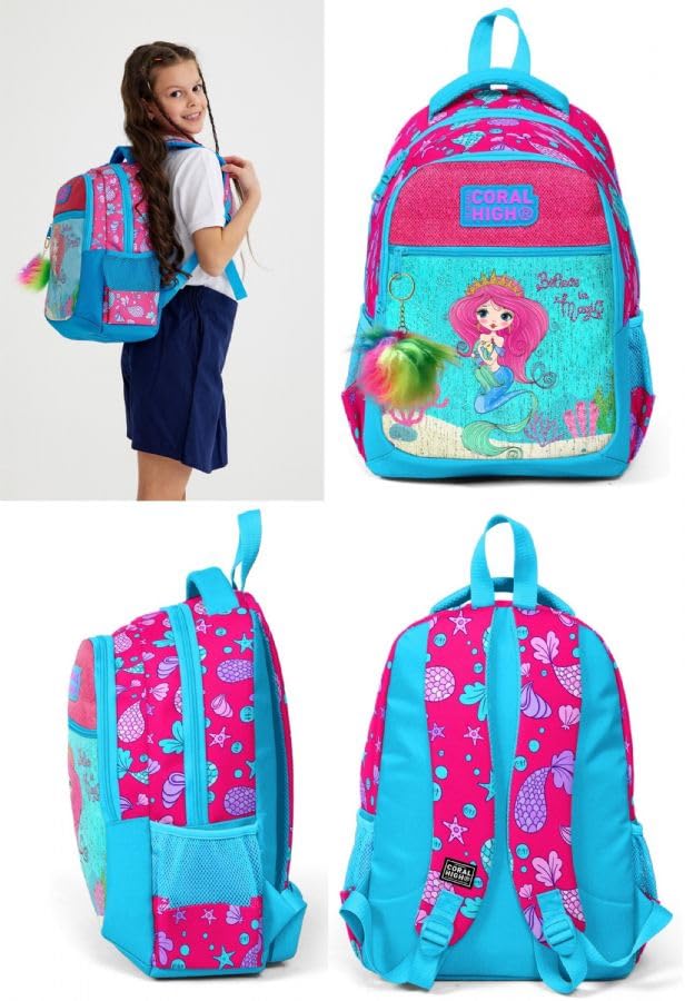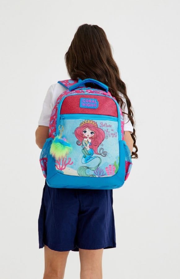 Coral High - Coral High Kids Three Compartment School Backpack - Pink Mermaid Pattern