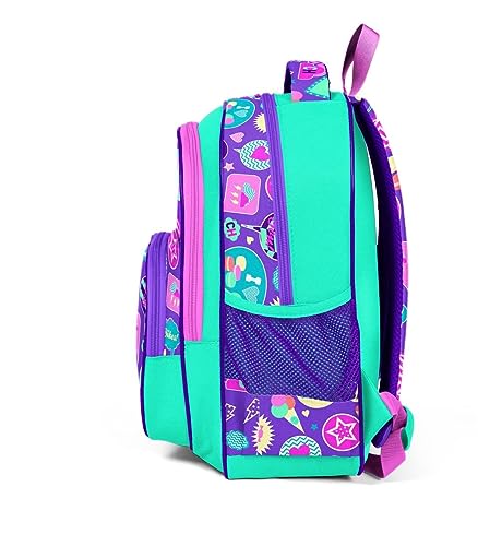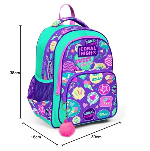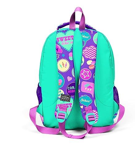 Yaygan - Coral High Kids Three Compartment School Backpack - Water Green Purple Patterned