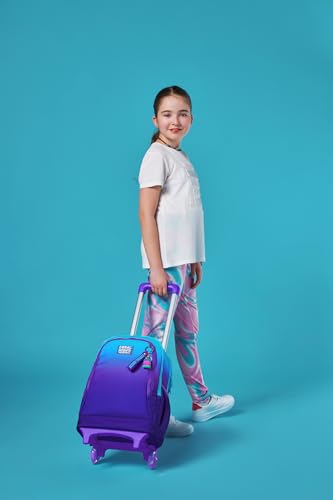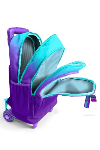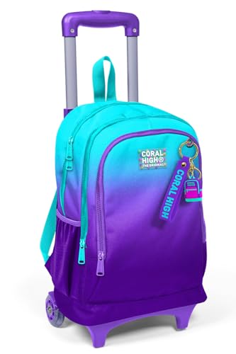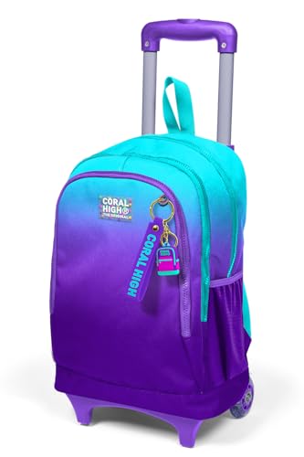 Coral High - شنطة ظهر مدرسية بعجلات للاطفال من كورال هاي بلون فيروزي وارجواني بثلاثة اقسام، بوليستر، متعدد الألوان