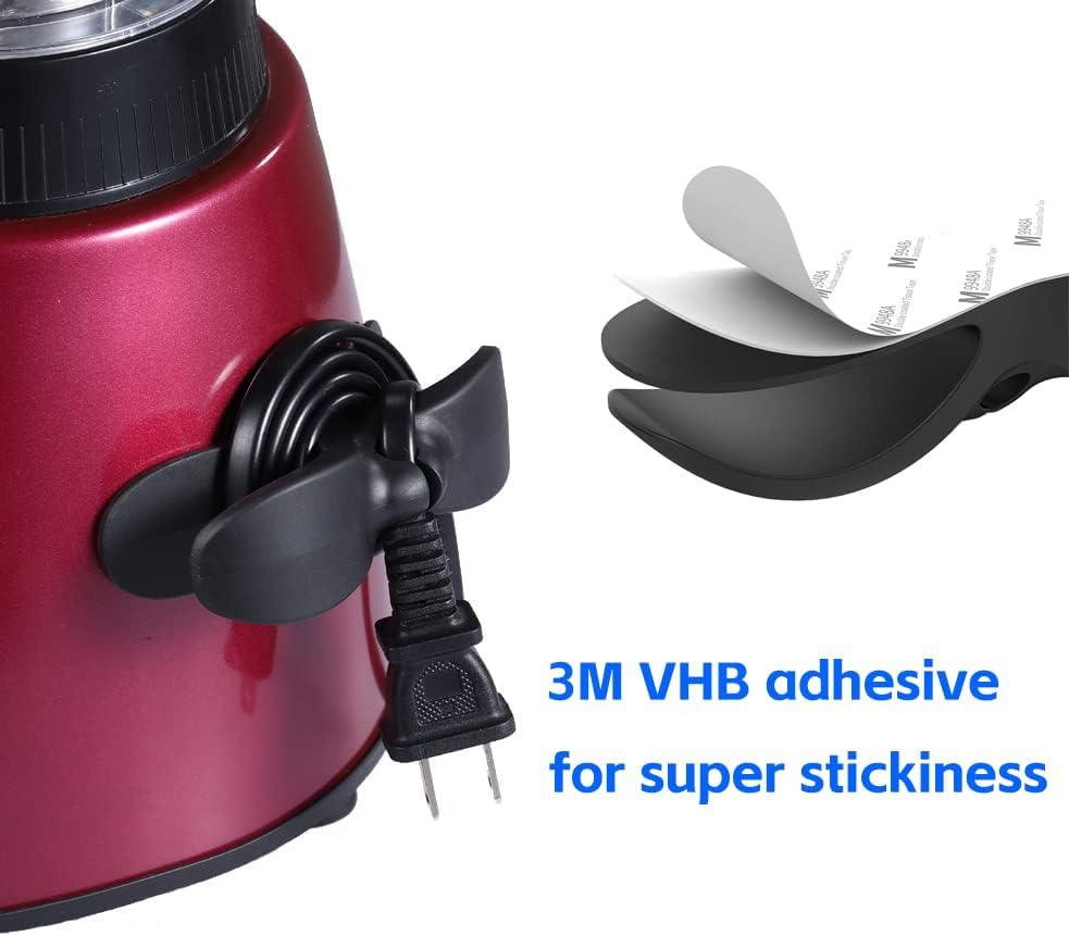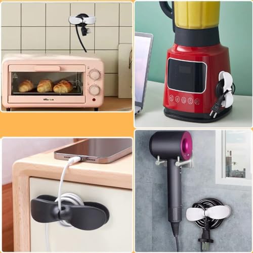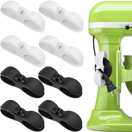 Spaceshoop - منظم اسلاك لادوات المطبخ، 8 قطع من النيويلوك، حامل تغليف الاسلاك اللاصق لتنظيم الكابلات للاجهزة المنزلية ـ حامل الخلاط وماكينة تحضير القهوة (ابيض واسود)