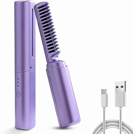 Generic - مكواة فرد شعر لاسلكية محمولة للسفر، مكواة فرد شعر صغيرة قابلة لاعادة الشحن، مكواة فرد وتجعيدها وفردها، فرشاة فرد شعر صغيرة 2 في 1 مع 3 مستويات، محمولة