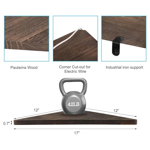 - Easy to Install: Each set includes mounting hardware and instructions for quick and straightforward installation. Transform unused corner areas into functional storage or attractive display zones with this versatile set of dark brown corner floating shelves.