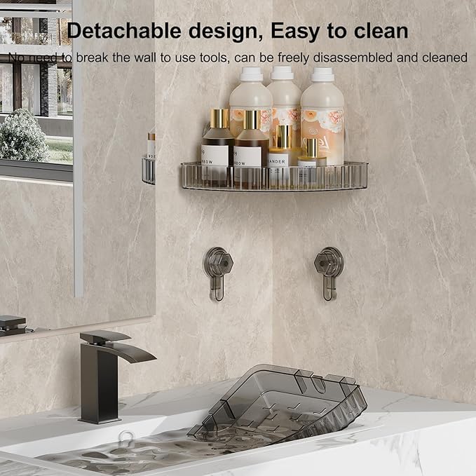 - 【تصميم بتصريف للمياه】رف الدش مقاوم للماء ويتميز بقاع مجوف يسمح بتصريف الماء بسرعة وتجفيف سريع. منظم الدش بقاعدة لاصقة.