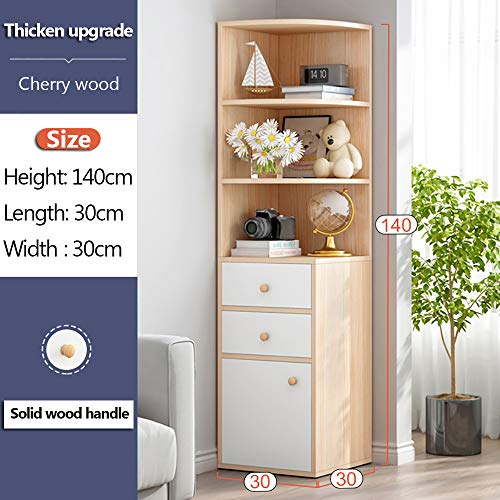 NAR - Corner Storage Cabinet, Free Standing Pantry With 2 Drawers and 3 Shelves, Home Office Furniture Bookcase, Side Cupboard, Wood Cube Organizer (G153-Cherry S)