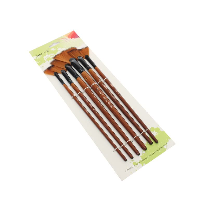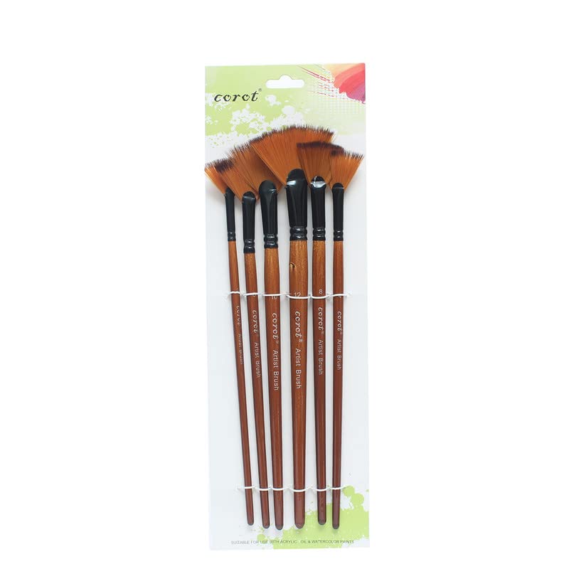 Corot - Corot Paint Brush Fan Shape Set Of, 6 Brushes, Water/Oil/Acrylic