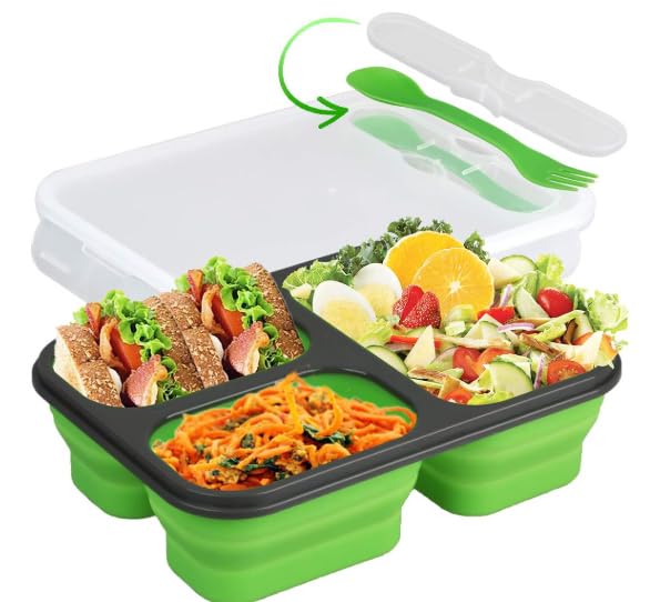 Generic - Corslax Silicone Lunch Box, Foldable Lunch Box, 3 Compartments, Compatible with Microwave, Dishwasher, Freezer