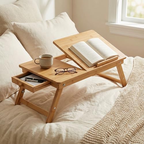 Cortesi Home - طاولة تقديم لابتوب تيري مع جزء علوي مائل ودرج من كورتيزي هوم، لون بني، CH-AX900318