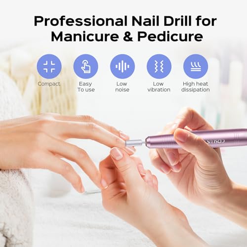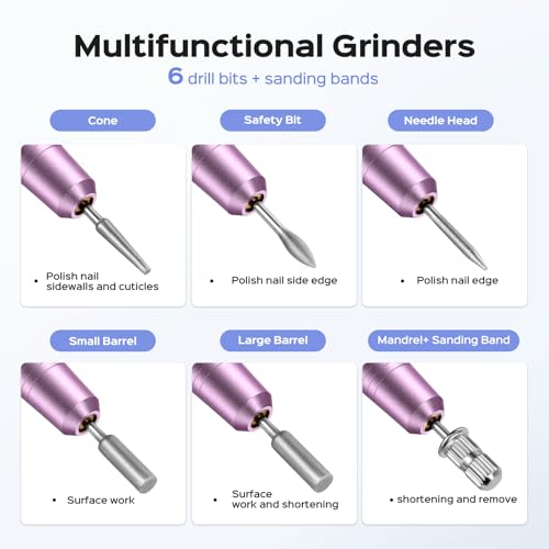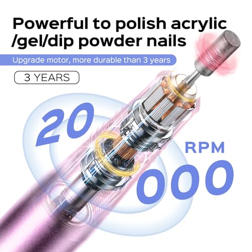 COSLUS - ماكينة حفر اظافر كهربائية من كوسلس: ادوات احترافية للمانيكير والباديكير لمسحوق جل الاكريليك، مجموعة تلميع الاظافر مع رؤوس واشرطة صنفرة، للاستخدام المنزلي وصالونات التجميل، ارجواني