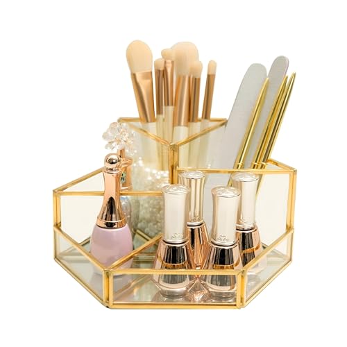- Add a touch of elegance to your vanity with this stylish organizer. Its decorative appeal functions not just as storage but also as a sophisticated accent piece that enhances the aesthetic of your space. The sleek design blends seamlessly with any decor style, transforming your beauty routine into an upscale experience.
