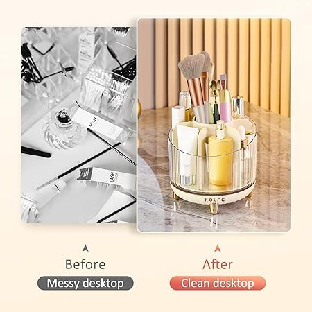 Generic - منظم مستحضرات التجميل، حامل فرش المكياج شفاف، صندوق تخزين لسطح المكتب، صينية تنظيم مجوهرات زجاجية عتيقة بلون ذهبي (موديل 1)