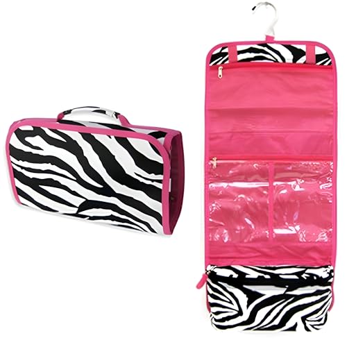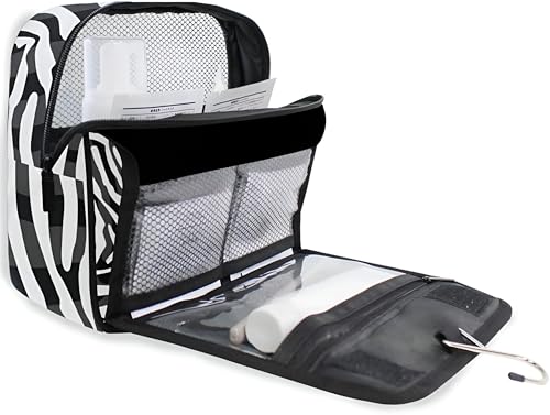 - Este neceser de viaje colgante presenta un llamativo estampado de cebra, combinando estilo y funcionalidad para usuarios que desean un organizador de cosméticos elegante y práctico en sus viajes.