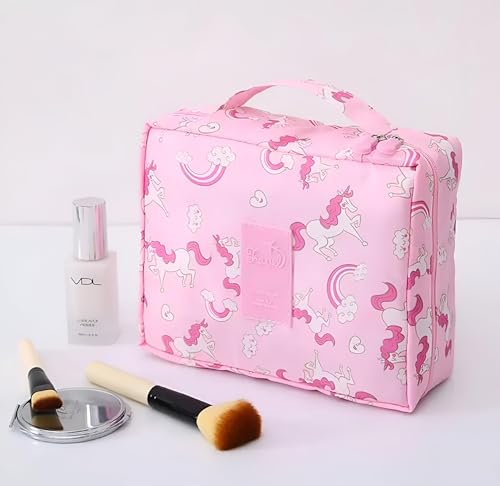 Generic - Cosmetics Organiser - Large travel-ready makeup case with adorable unicorn design in pink, ideal for women and girls, featuring durable fabric and smart compartment layout for all beauty essentials.