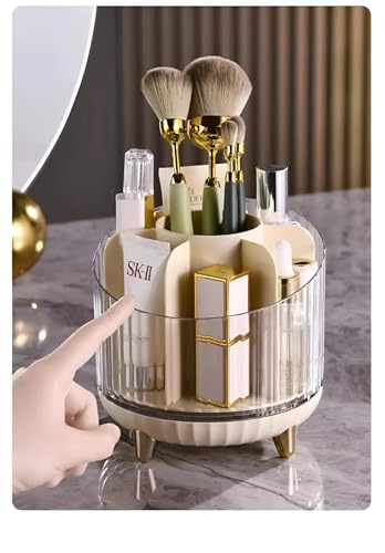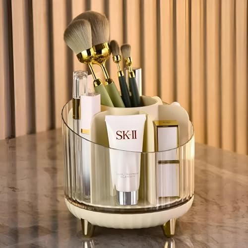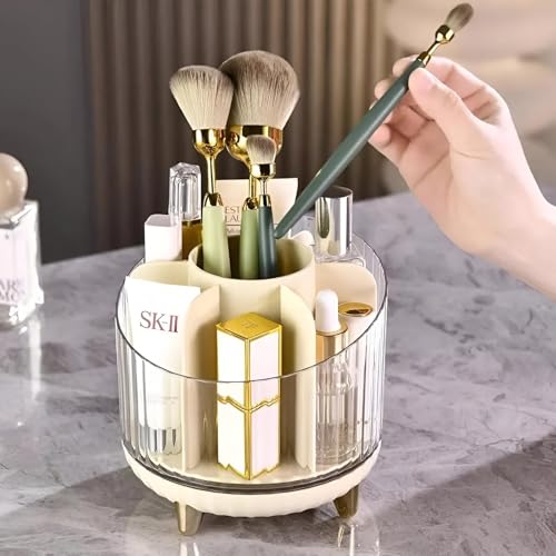 Generic - منظم مستحضرات التجميل - حاوية دوارة من الاكريليك متعددة الاقسام مع حامل فرشاة، مناسبة للعناية بالبشرة وجمع المكياج، تعزز التنظيم وسهولة الوصول
