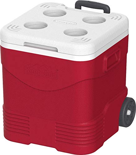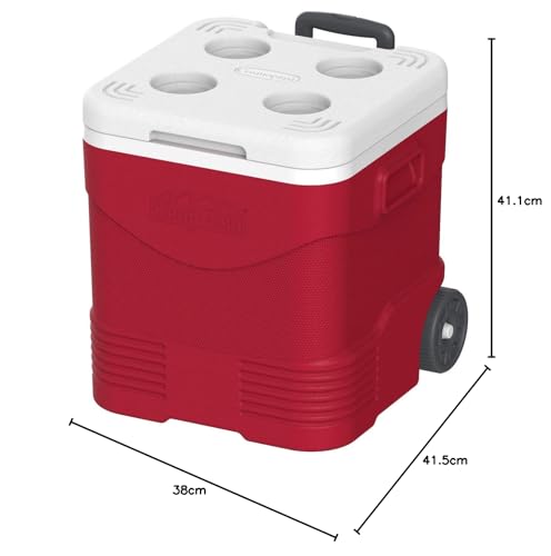 Cosmoplast - صندوق ثلج بعجلات يحافظ على برودة الطعام للرحلات من كوزموبلاست، سعة 30 لتر، لون أحمر