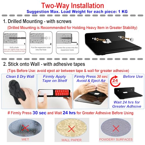 - 【أرفف عائمة متعددة الاستخدامات】 مثالية لحمل وعرض النباتات ومكبر الصوت اللاسلكي وجهاز التحكم عن بعد وكاميرا الأمان ومجموعة الشخصيات وما إلى ذلك. رائعة لحمل مكبر الصوت أو الأجهزة الترفيهية الأخرى في غرفة النوم / غرفة المعيشة. يمكن أيضًا استخدام الأرفف العائمة بالاتجاه العكسي حسب احتياجاتك.