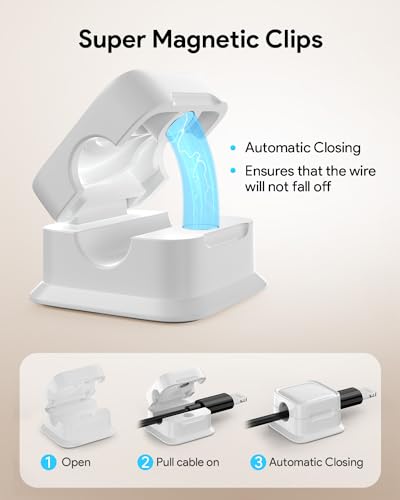 - Magnetic Locking & No Falling Off: Secure magnetic grasp opening and closing allow easy cord in,and powerful magnetic lock the organizer firmly to hold any charging head without falling off, more convenient to pull the cables out for smoothly using