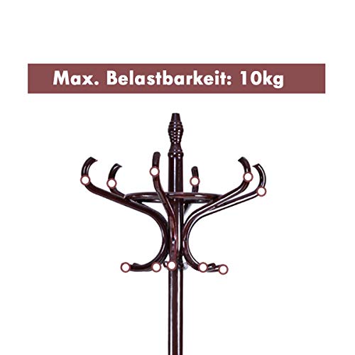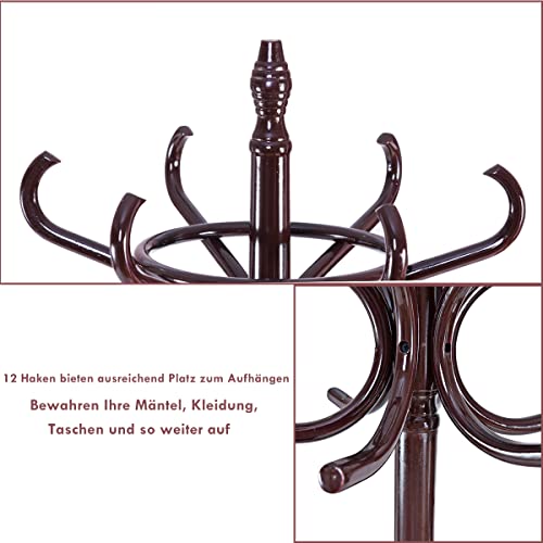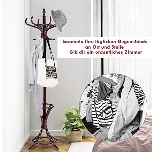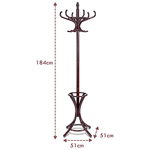 COSTWAY - حامل معطف 1.84 متر مع مظلة منكوستواي جاكيت 12 خطاف معاطف رف خشبي للممر وغرفة المعيشة النوم بني