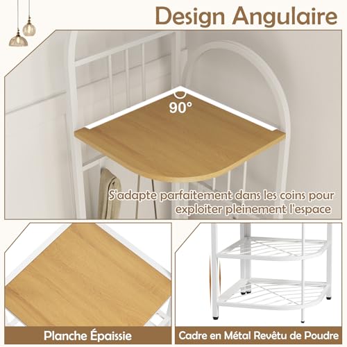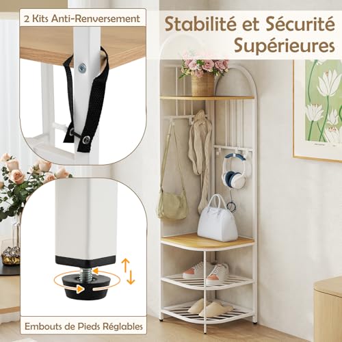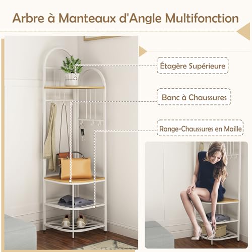 COSTWAY - COSTWAY 4 Tier Corner Coat Rack, Shoe Bench, 6 Hooks, 4 Shelves, Metal Clothes Rack, 180 cm, Corner Entrance Furniture for Corner, Living Room, Bedroom, Hallway (Natural)