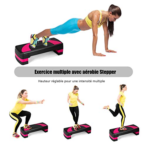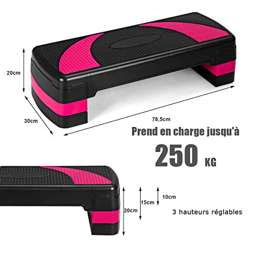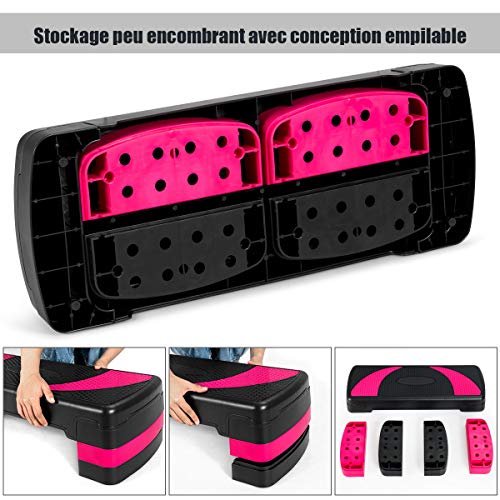 COSTWAY - COSTWAY Aerobic Step Fitness Adjustable Height 3 Levels 10/15/20 cm with Non-Slip Surface Weight Capacity 250 kg for Home/Gym Exercise/Office (Black 3 Levels)