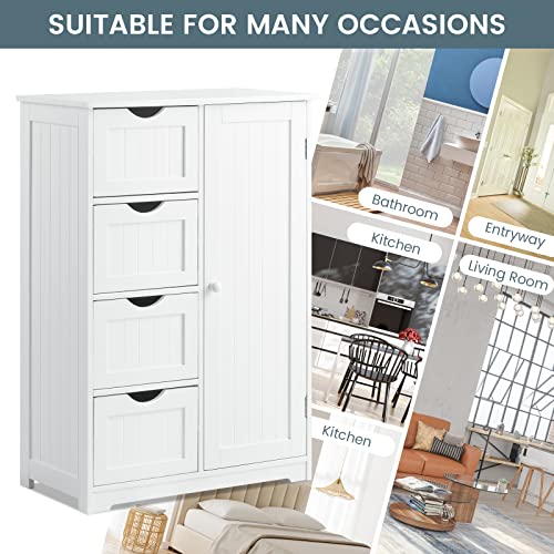 COSTWAY - COSTWAY Bathroom Storage Cabinet, Wooden Storage Cupboard Organizer with 4 Drawers & Adjustable Shelf, Modern Floor Cabinet for Living Room, Bathroom, Kitchen, Entryway (White)