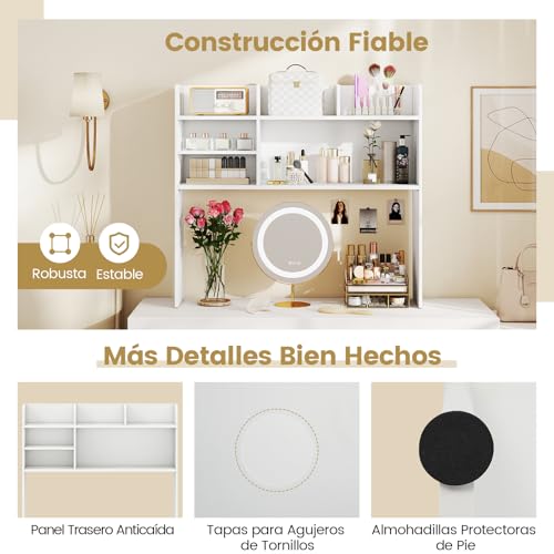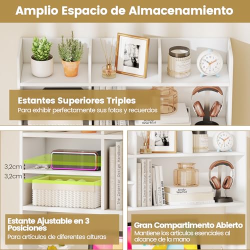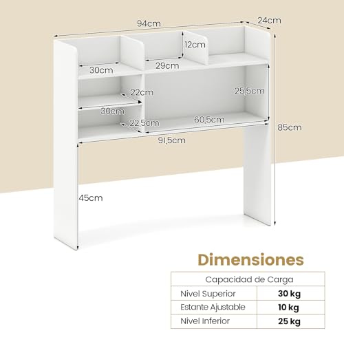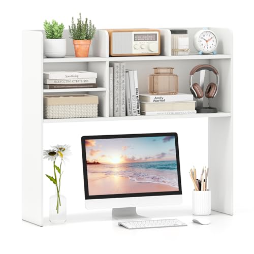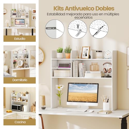 COSTWAY - COSTWAY Desktop Shelving Unit, 3 Tiers and 6 Shelves, Wooden Desktop Storage Organizer, 94 x 24 x 85 cm (White)