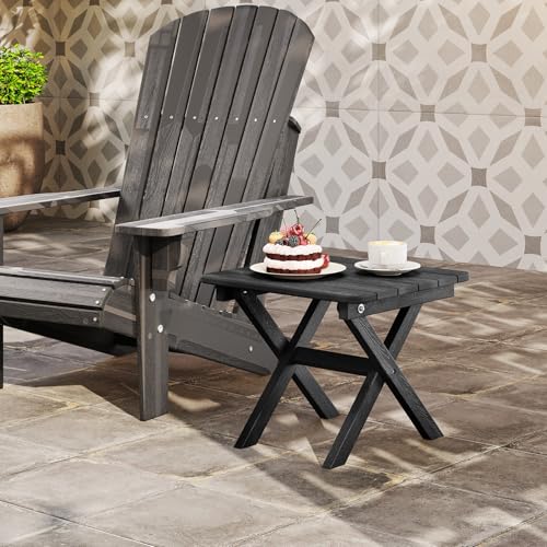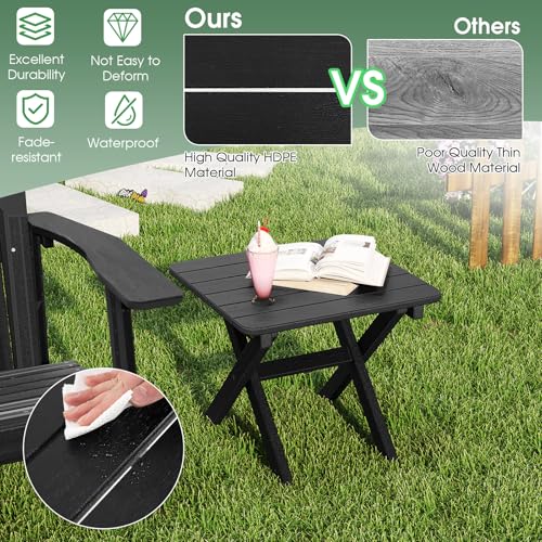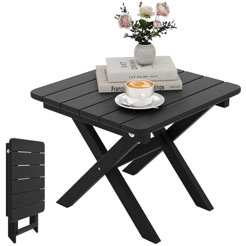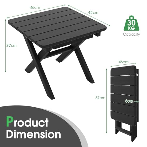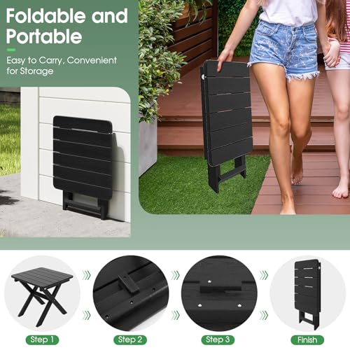 COSTWAY - طاولة جانبية قابلة للطي للاستخدام الخارجي في جميع الأحوال الجوية من كوستواي، طاولة قهوة للحديقة، طاولة شاي مربعة صغيرة للفناء والشرفة والفناء الخلفي والحديقة وجانب حمام السباحة (أسود)