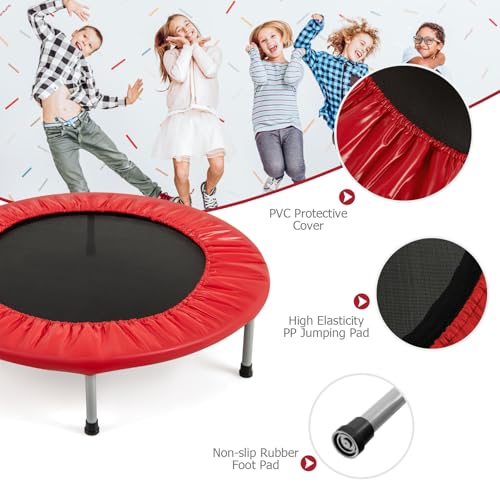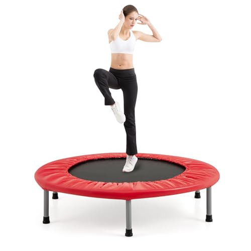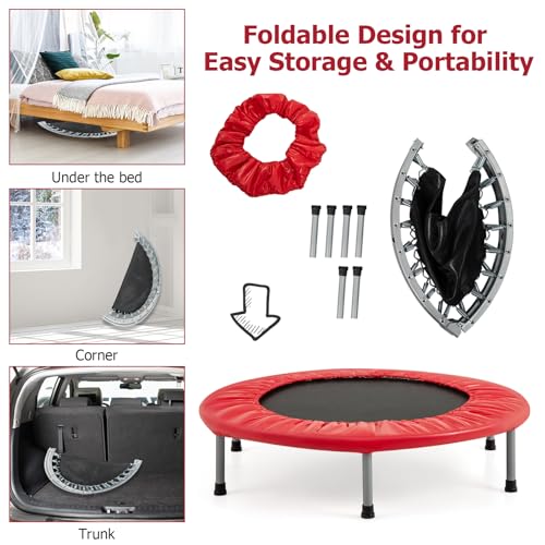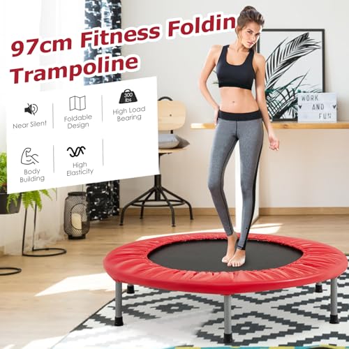 COSTWAY - مجموعة ترامبولين صغيرة من كوستواي، نطاط لياقة بدنية قابل للطي 96.5 سم مع بطانة ونوابض مرنة أمنة للتمرين في الأماكن المغلقة والمفتوحة، سعة وزن 150 كجم