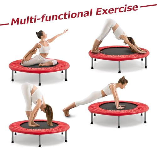 - 【ترامبولين تدريب رائع】هل تبحث عن طريقة لتدريب جسمك والاستمتاع بمتعة كبيرة في نفس الوقت؟ الترامبولين الآمن مقاس 38 انش هو خيارك الأفضل، فهو مثالي للتمارين الهوائية منخفضة التأثير، يمكنك حتى مشاهدة التلفزيون أو الفيديو أثناء القفز عليه لحرق السعرات الحرارية.
