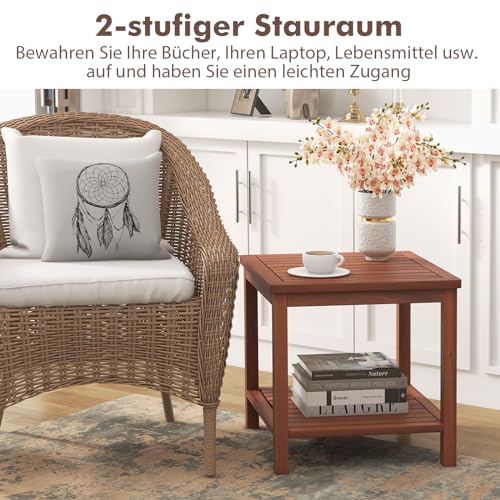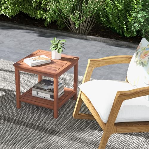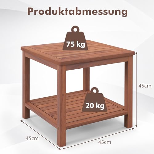 COSTWAY - COSTWAY Side Table, Acacia Wood, Garden Table, Small Balcony Table, Wooden Table with Slat Table Top, Coffee Table for Garden, Balcony, Living Room (H-Shape, 45 x 45 x 45 cm)