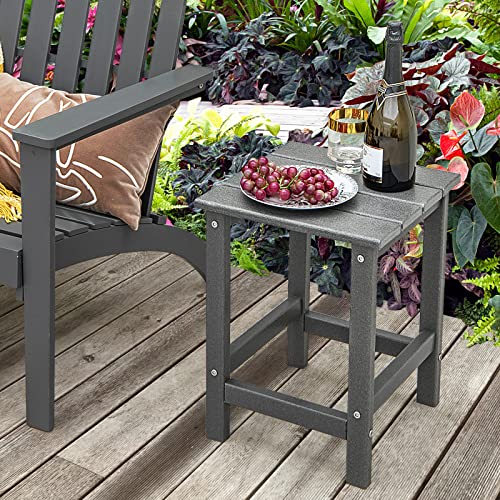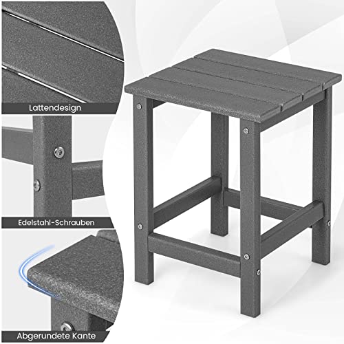 COSTWAY - كوستواي طاولة جانبية، طاولة حديقة صغيرة مصنوعة من البلاستيك المقاوم للاشعة فوق البنفسجية، طاولة شرفة، مقاومة للعوامل الجوية، للفناء والشرفة والحديقة، 35.5 × 35.5 × 46.5 سم، رمادي