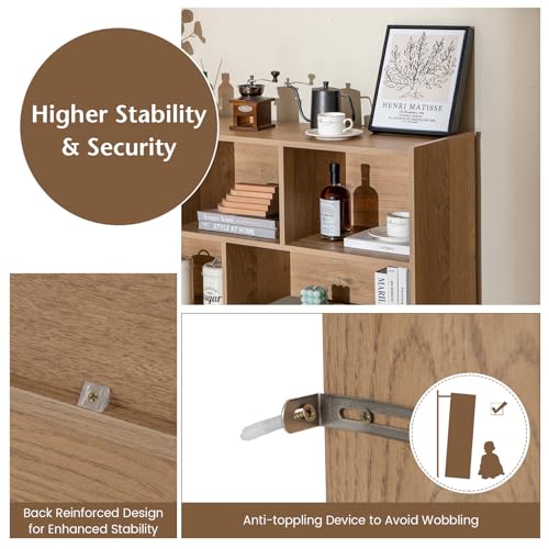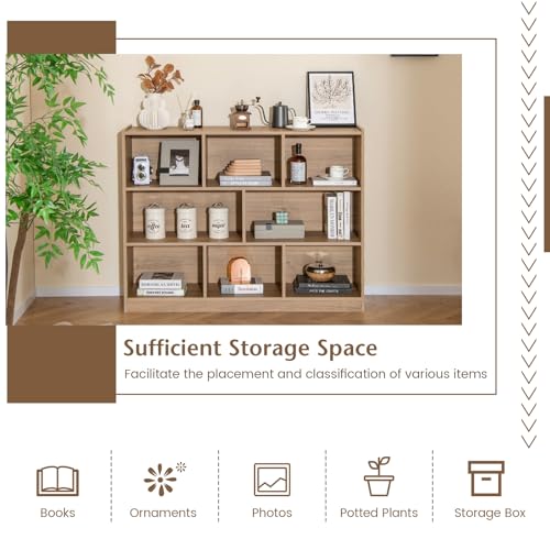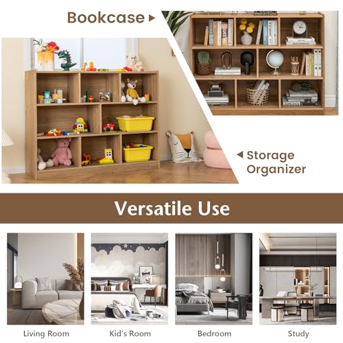 COSTWAY - كوستواي خزانة كتب خشبية مكعبة وحدة رفوف تخزين مفتوحة من 3 طبقات مع 8 مساحات رف قائم بذاته لغرفة المعيشة وغرفة لعب الاطفال والدراسة طبيعي خشب مُصنع