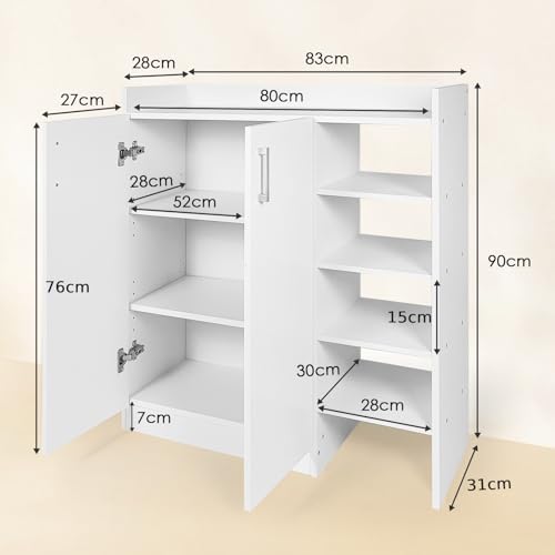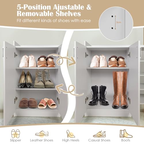 COSTWAY - COSTWAY Wooden Shoe Cabinet, 2-Doors Freestanding Shoe Cupboard with Shelves, Slim Footwear Rack Shoes Storage Organiser for Hallway Entryway, 83x31x90cm (5-Position Adjustable Shelves, White)