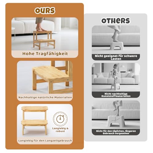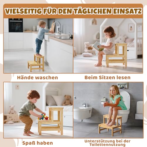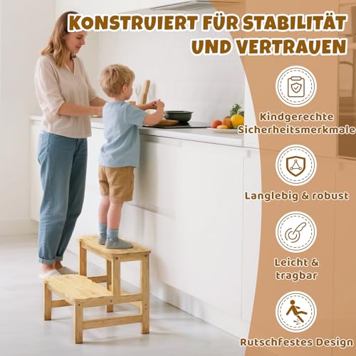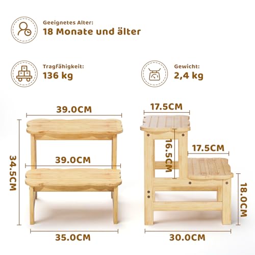 COSYLAND - COSYLAND Children's Step Stool with 2 Steps – Children's Step for 18 Months Onwards – Ideal for Kitchen, Bathroom and Bedroom – Natural